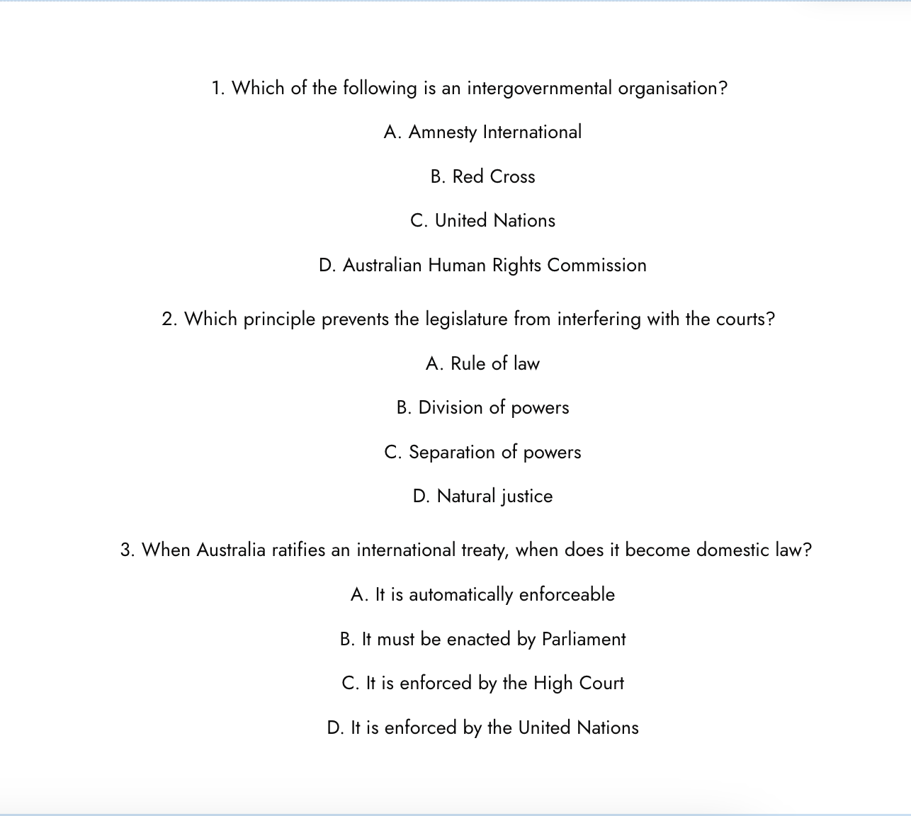 Below is a Human Rights practice set, organised by each section of the syllabus. It includes: