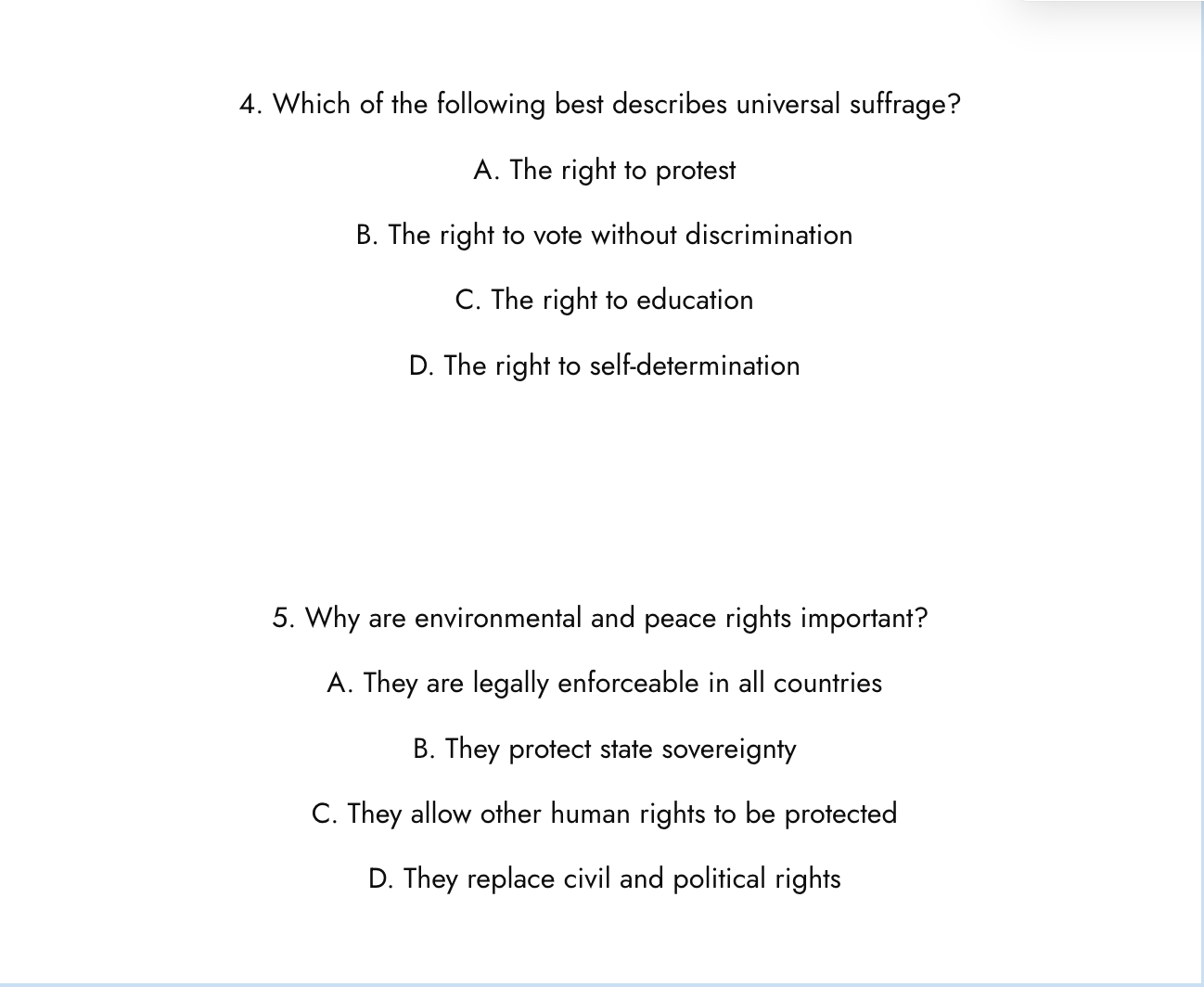 25 Human Rights Practice Questions (By Section)